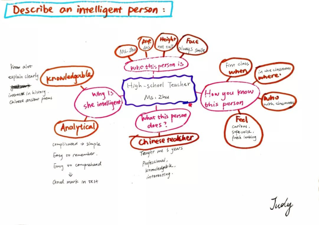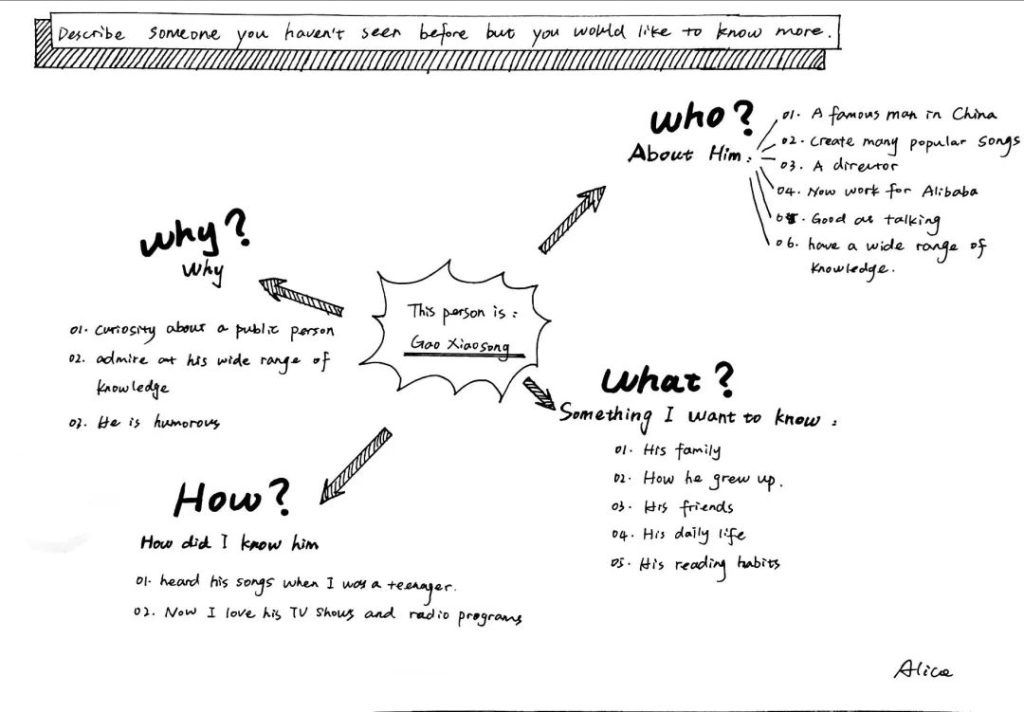 因此,整个课堂Daisy采取了“翻转课堂”的教学法。在之前的课上,Daisy带领同学们将跟“人”有关的话题拆解成了四个小问题,并让同学们有针对性地一个个小问题去解决。这节展示课的主要内容就是最后一个问题的回答 —- why do you like this person? 也就是对“人”的性格特征的描述。