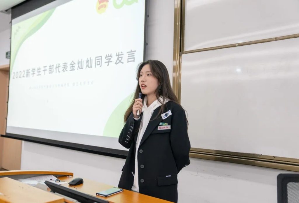 同时,她代表全体团学新生表示,“从此刻开始,我们会紧跟学姐学长们的步伐,不断学习方法,积累经验。关关难过关关过,有朝一日,我们这些22级的团学新成员,也能成为独当一面的中德学子和奋发有为的万里人!