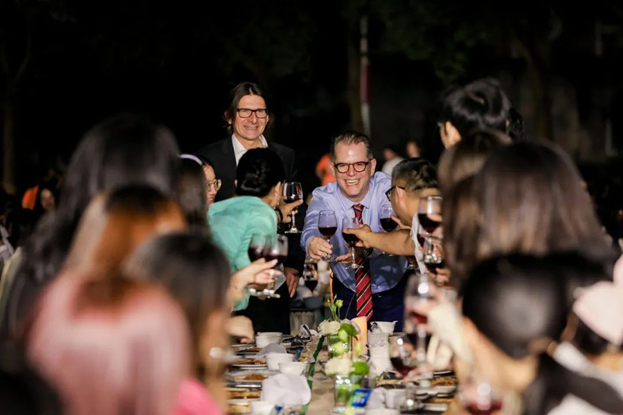中德品牌学部,新生晚宴看过来 首页 最新资讯 新闻动态 / 2023年09月10日 9月9日20:30, 51号楼南侧草坪的灯光渐渐暗去,新生晚宴落下帷幕。至此,浙江万里学院中德品牌学部2023迎新活动圆满结束。浙江万里学院、德国品牌应用科学大学两校领导、教师代表,中德品牌学部2023级全体新生,新生家长代表等460余人出席晚宴。参加晚宴的2023级同学说:新生晚宴满满的仪式感、设计感,激发了我们对大学生活、专业学习的无限美好想象。