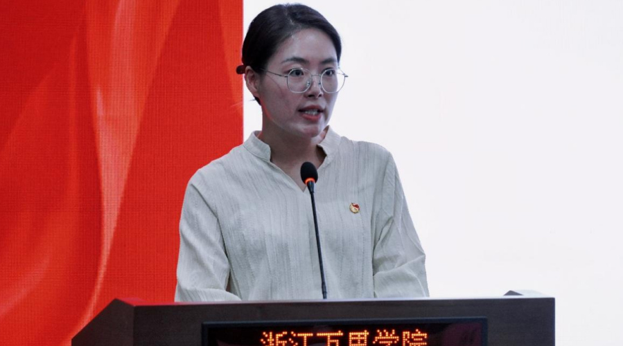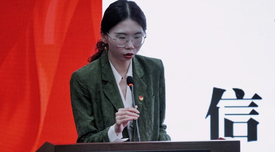 校团委副书记蒋颖老师为本次大会致词,她代表校团委对中德品牌学部团总支提出几点希冀:希望中德品牌学部团总支能够在工作中加强联合协作,引导学子们成为走在时代前列的奋进者、开拓者、奉献者,充分激发新时代中国青年在强国建设和民族复兴伟业中担当的重要作用,为推动我校建成国内一流、国际知名的高水平应用型大学贡献青春力量。