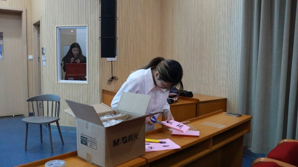 工作人员提前准备大会材料
