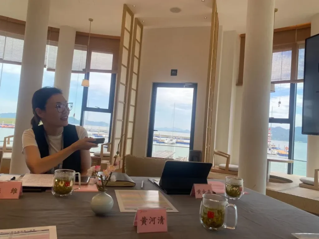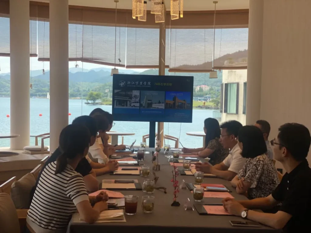 在东钱湖文旅集团,集团党委书记、董事长杨郁等企业领导热情接待了王书记一行。在座谈会上,东钱湖文旅集团相关负责人对企业的业务布局、特色优势等进行了详细的介绍。王伟忠书记也向企业简要介绍了浙江万里学院的发展史和学校目前的专业建设和人才培养情况,中德品牌学部主任张宜平着重介绍了中德品牌学部的专业特色和产教融合成果。