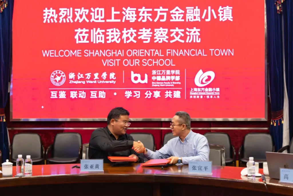 在合作研讨会上,张宜平院长和高迪副院长对中德品牌学部的发展历程、办学理念、专业特色、人才培养模式、科学研究、国际交流、产教融合成果等情况进行了介绍。上海东方金融小镇及相关企业负责人介绍了小镇和各企业发展情况。院政企多方达成合作共识,举行了产教融合基地揭牌仪式,并签订了多项校企合作协议。