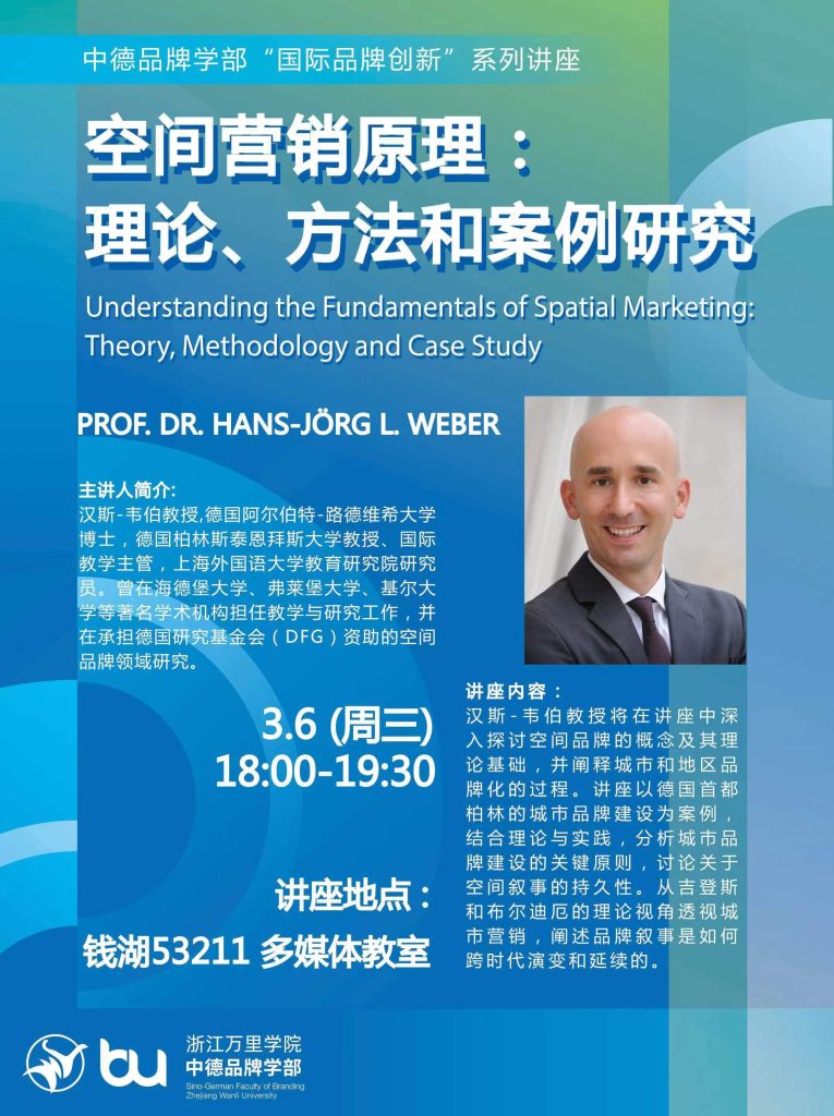 汉斯﹣韦伯教授将在讲座中深入探讨空间品牌的概念及其理论基础,并阐释城市和地区品牌化的过程。讲座以德国首都柏林的城市品牌建设为案例,结合理论与实践,分析城市品牌建设的关键原则,讨论关于空间叙事的持久性。从吉登斯和布尔迪厄的理论视角透视城市营销,阐述品牌叙事是如何跨时代演变和延续的。