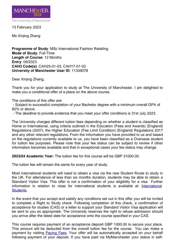 截止到目前,张欣静已经收到了来自曼彻斯特大学(The University of Manchester)、南安普顿大学(University of Southampton)、格拉斯哥大学(University of Glasgow)三所QS排名前100世界名校的Offer。