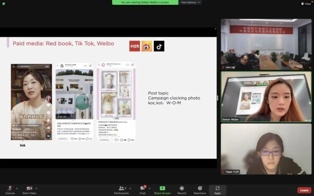 中德融合的导师和助教团队也为学生们提供了大量指导,品牌传播专业的周信言老师指导学生前期调研策略框架的确立和媒体计划的制定。德国教授Stefan Waller在后期视觉部分给学生们提供了执行建议和路线参考。