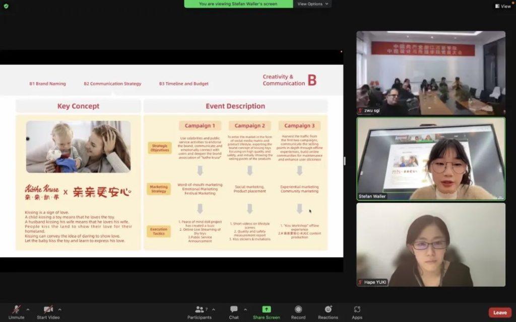 Yuki经理在听取各组的方案汇报后表示:“中德设计与传播学院的学生们能够很好地把握Käthe Kruse的品牌精神和品牌调性,同学们最后完成的方案呈现出的结果超出我们的预期,创意很出色,而且可行性强,为Käthe Kruse进入中国市场提供了可切实落地的思路。”