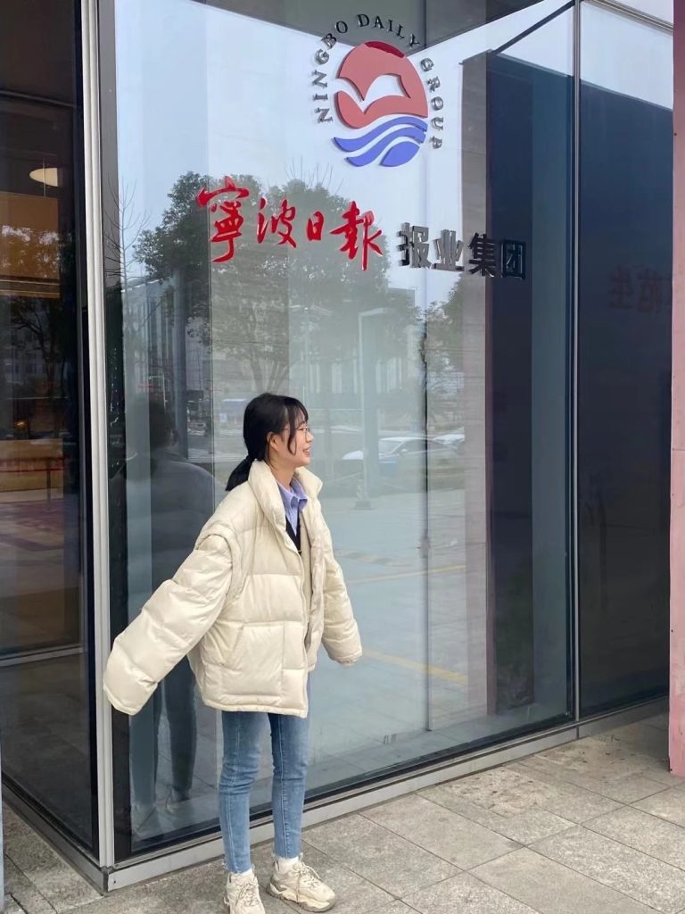 得益于学部课堂对学生演讲能力的持续磨练,身为大二学生的李晨欣获得了在宁波日报实习的机会。实习工作大多围绕政府相关工作、活动展开,内容、工作模式都较为传统。初入职场的她,感受到了与校园截然不同的合作氛围。学然后知不足,带着在这里累积的困惑和思考,回到学校,李晨欣觉得自己学得更有方向了。