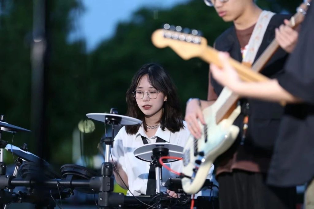 学习之余,李晨欣还是一名乐队鼓手。“乐队是我大学非常重要的一部分,我喜欢和队友彼此之间不由分说的默契,也喜欢苦练几周只为舞台那5分钟的绽放。而朋克和摇滚带给我的是唯美和诗性,是对生命的表达和呐喊。在这个时候,我会直接感受到我的生命是鲜活的,是自由的。”