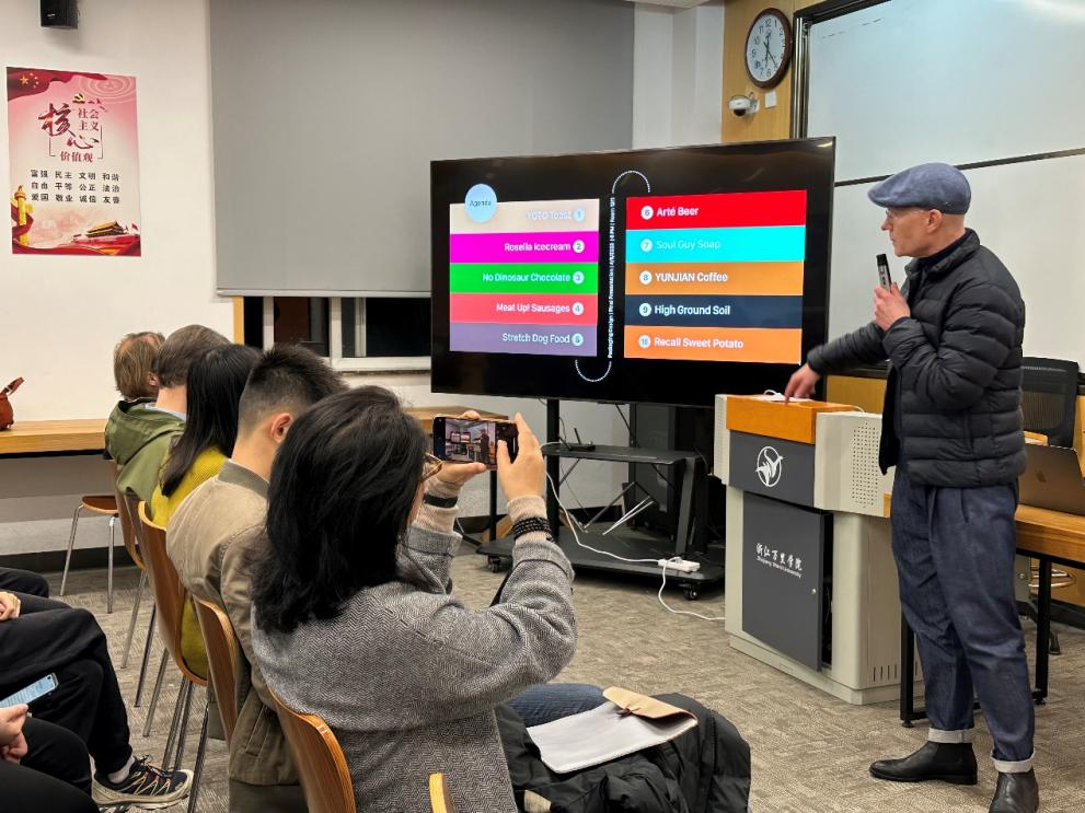 这门课程由 Steffen Kalauch 老师主讲。他将包装设计拆分为产品开发、品牌发展、包装设计、包装展示和广告营销,从源头上教授同学们从一个产品的本身入手,进而研究其产品思路和目标消费者,进行设计实验,让同学们从根源上去了解如何做好一个包装设计。在课上,Kalauch老师将产品的指导方针和品牌开发创意融会贯通,先让学生尝试制作具有明确配色方案和排版的企业设计,再铢积寸累,为一个产品设计目标性明确并且独树一帜的包装。