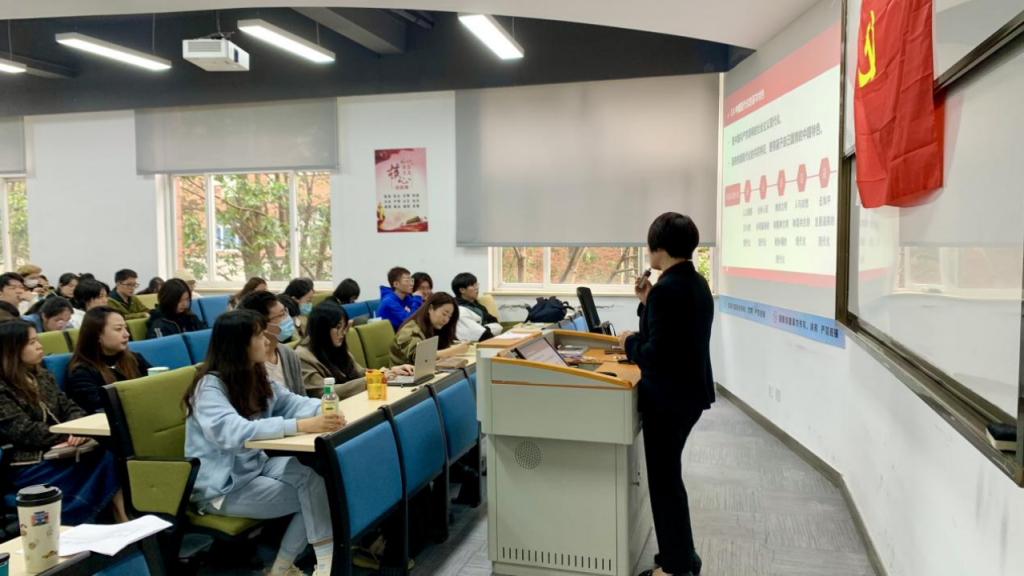 2022年11月23日中午12:00,中德设计与传播学院邀请了我校马克思主义学院的肖意贞副教授在53号楼207教室给中德设计与传播学院的师生们作二十大精神主题讲座。本场讲座学院二十大精神学习系列活动之一,学院全体教师、学生党员、发展对象、入党积极分子和部分学生代表参加了本次讲座。