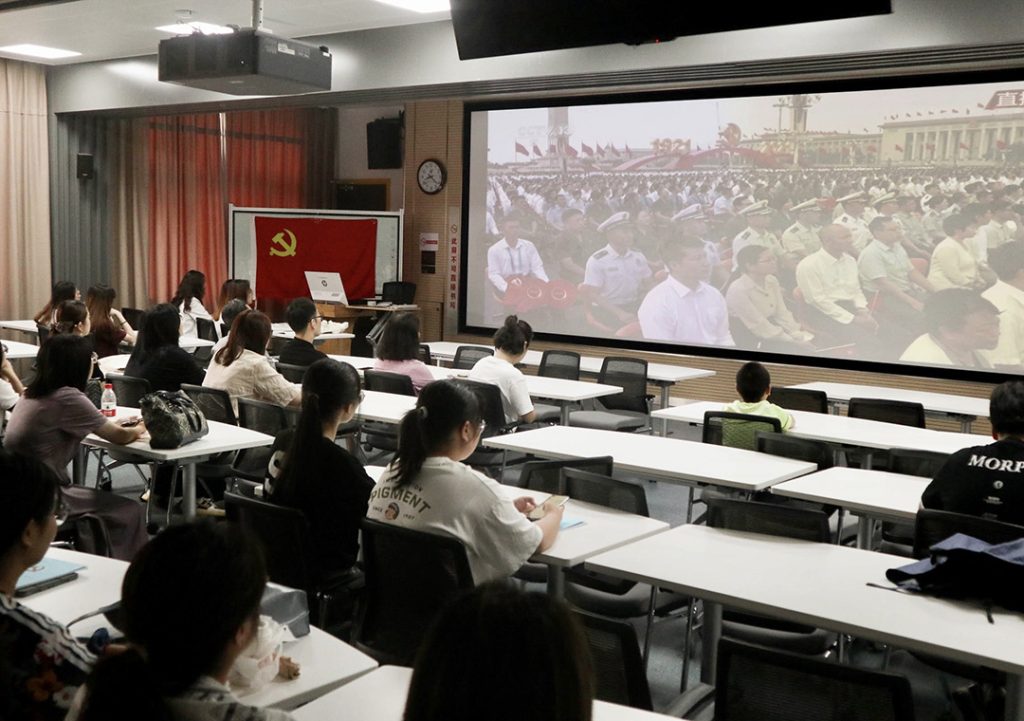 2021年7月1日,国际学院党总支组织全体教工、学生党员和入党积极分子共60人在3226教室集中观看庆祝中国共产党成立100周年大会直播。