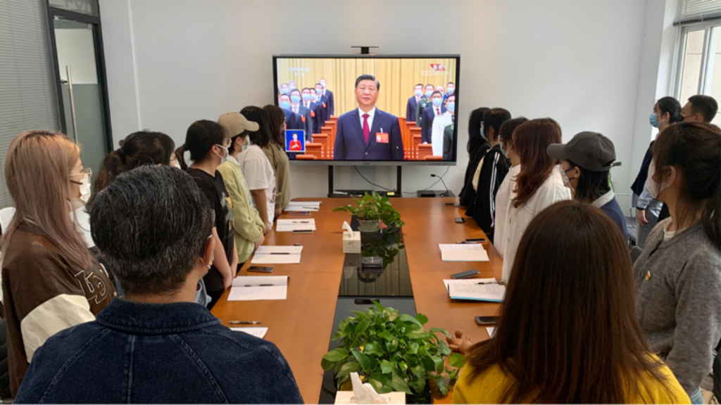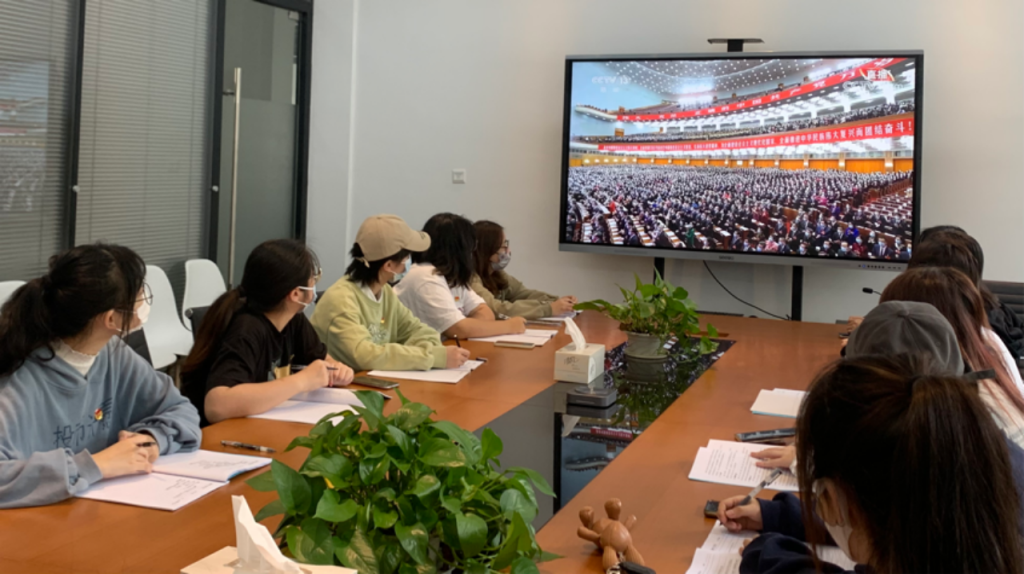 根据浙江万里学院党委的统一部署,中德设计与传播学院党总支组织教职工党员、学生党员及团学骨干于51A104会议室,集中收看中国共产党第二十次全国代表大会开幕会,其余因特殊情况无法到会的党员,线上参与观看。