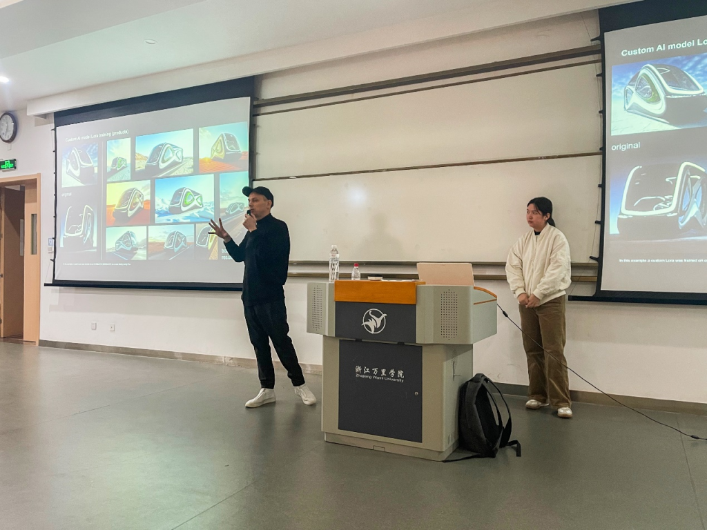 通过一系列生动具体的案例,Krykhtin向在场师生展示了人工智能在艺术创作领域的广泛影响力。他指出,当今的AI技术已经发展到了一个成熟的阶段,其应用触角延伸至电影制作、平面设计、视觉传达、建筑设计乃至新兴的元宇宙体验等多个维度,展现出令人瞩目的创造力与多样性。此外,他进一步强调,要最大化人工智能的潜力,关键在于精准且高效地利用其强大的大数据分析功能,并结合超越传统框架的创新思维,以创作出更多精美且具有深刻影响力的数字艺术作品。