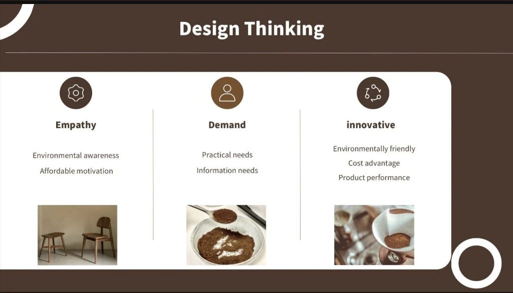 作品介绍:项目致力于废弃咖啡渣的循环利用,契合可持续经济发展的商业模型。通过从家庭和咖啡店广泛收集咖啡渣,我们从家庭与咖啡店收集咖啡渣,将其制成咖啡渣复合材料,进而打造环保家具。同时,凭借完善的售后服务体系,有效确保家具的长期使用与价值延伸,减少废弃物排放,实现经济与环境效益双丰收。