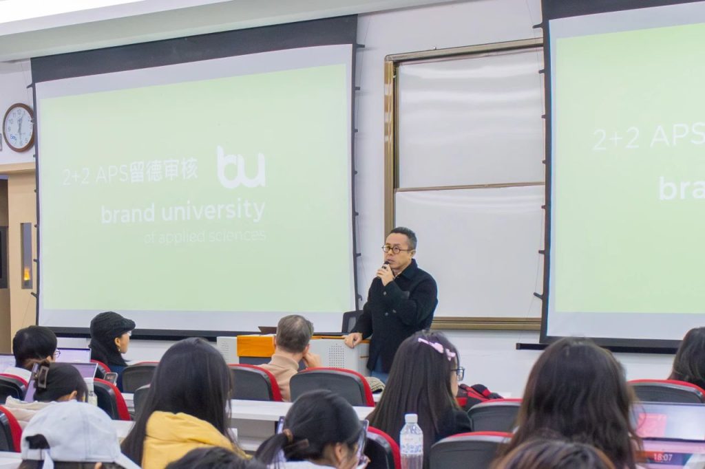 为促进23级2+2各专业学生更好地了解未来学业规划与赴德申请,中德品牌学部于近日举办了APS(Akademische Prüfstelle Kulturreferat der Deutsche Botschaft Peking)留德审核讲座。张宜平院长与Stefan Waller教授为全体23级学生讲解了今年赴德留学的学业安排以及详细的赴德申请流程,留德审核工作正式启动。