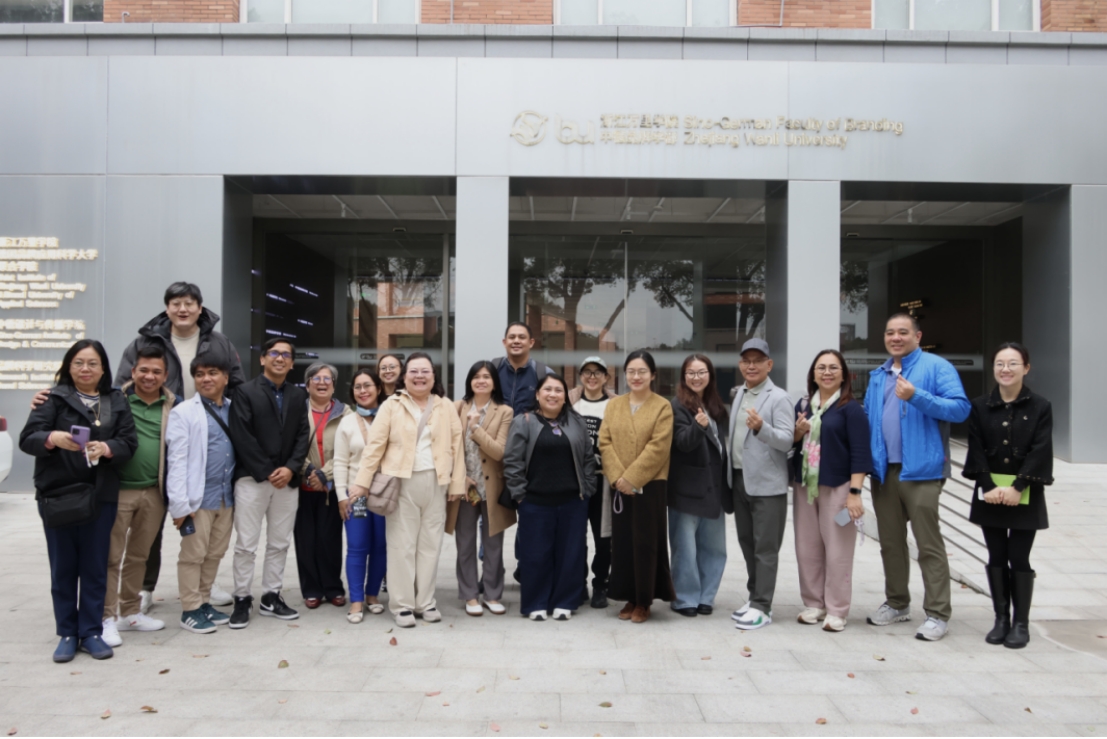 3月20日下午,菲律宾教育代表团一行17人到访中德品牌学部,围绕科技创新型人才培养开展专题交流。代表团成员包括来自菲律宾多个省市教育部门的学校分部主管、教育督导、信息技术负责人及相关企业代表,利帕市学校分部主管Felizardo O. Bolanos、布拉干省利帕市学校部门首席教育主管Lorna R. Medrano、卡拉卡市学校分部主管Gregorio T. Mueco、卢塞纳市学校分部主管Susan DL. Oribiana、圣巴勃罗市学校分部主管Gerlie M. Ilagan等教育领域人士共同参访。双方重点探讨了科技在当代大学生学习与生活中的应用。